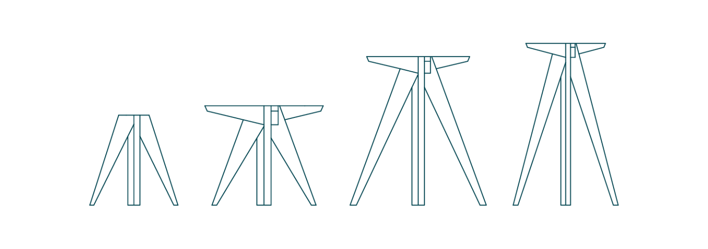 Planika je nikoli zaključena družina unikatnih klopi, miz, mizic barov in stolčkov, ki jih povezuje skupni temelj: masivno 4-krako podnožje, izdelano iz skrbno izbranega lesa visoke kakovosti. Oblikovno in slogovno preprosto, geometrijsko domišljeno podnožje odlično deluje v različnih ambientih in kombinacijah.